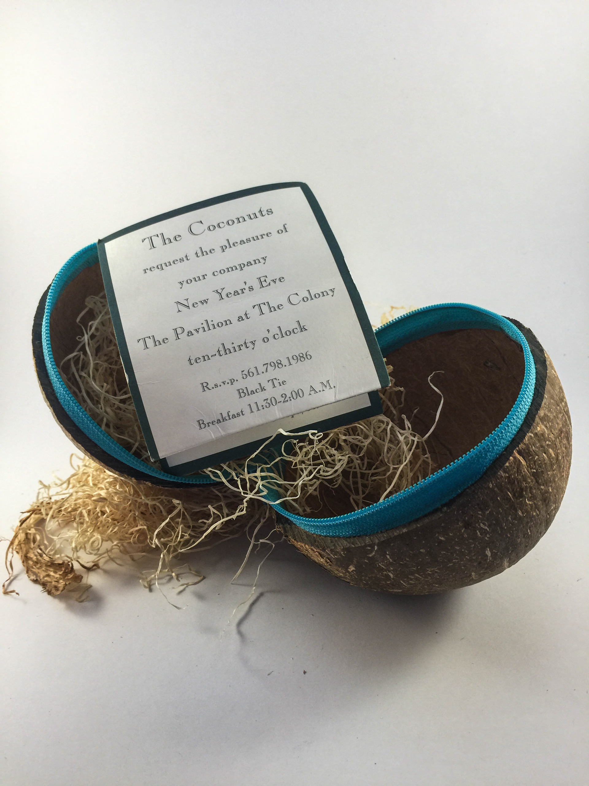 Invitation was mailed inside an actual coconut